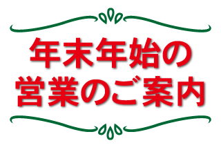 年末年始期間の営業のお知らせ